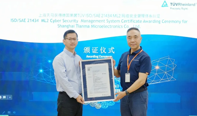 國際權威認證!天馬獲頒ISO/SAE 21434汽車網絡安全管理體系認證